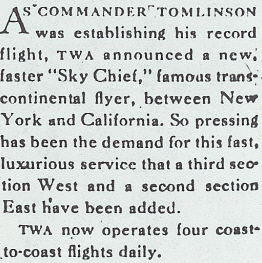This Transcontinental and Western Air ad ran in the New York Times, May 1, 1935. |